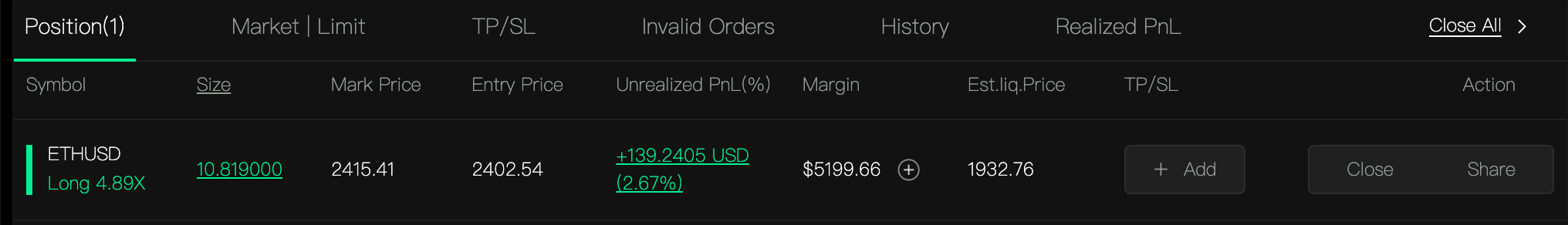 You can also close your position on the "CLOSE" page